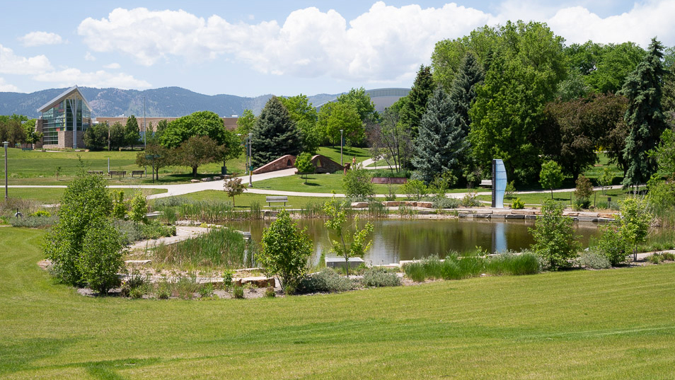This serene pond just west of the Lory Student Center features a gravel trail, native grasses, and trees for shade. You’ll spy geese and ducks frequently, too. Not just for looks, the lagoon also provides stormwater and floodwater capacity if flooding were to occur on campus. Look all around with a 360-degree view.